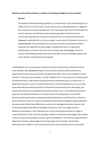 Garnett, J. (2013) Beyond a constructivist curriculum : a critique of competing paradigms in music education. British Journal of Music Education, 30 (2). pp. 161-175. ISSN 0265-0517 doi: 10.1017/S0265051712000575