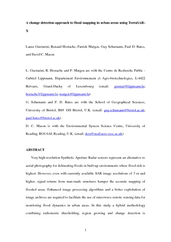 A change detection approach to flood mapping in urban areas using TerraSAR-X.