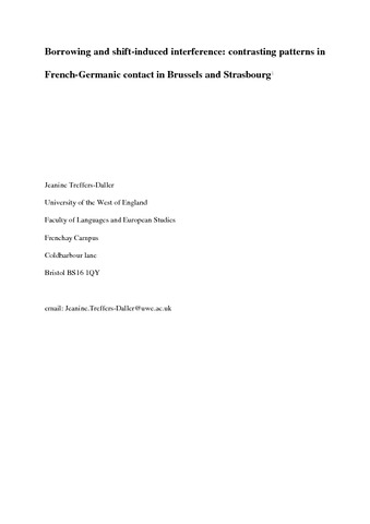Treffers-Daller, J. (1995). Les effets contrastant de l'emprunt et de l'interférence: similitudes et dissimilitudes entre Bruxelles et Strasbourg. Plurilinguismes (9-10) Les emprunts, 101-124.