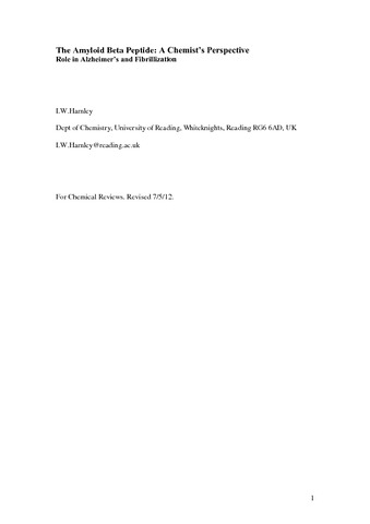 The amyloid beta peptide: a chemist’s perspective. Role in
