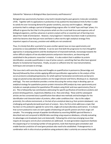Editorial for “Advances in Biological Mass Spectrometry and Proteomics”.