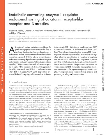 Endothelin-converting enzyme-1 regulates endosomal sorting of calcitonin receptor-like receptor and beta-arrestins.