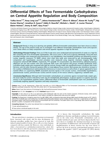 Arora, T., Loo, R. L., Anastasovska, J., Gibson, G. R. ORCID: https://orcid.org/0000-0002-0566-0476, Tuohy, K. M., Sharma, R. K., Swann, J. R., Deaville, E. R., Sleeth, M. J., Thomas, E. L., Holmes, E., Bell, J. D. and Frost, G.