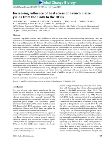 Increasing influence of heat stress on French maize yields from the 1960s to the 2030s.