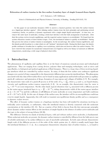 Uncontrolled Keywords | ab initio calculations, boundary layers, capillary waves, drops, liquids, molecular dynamics method, relaxation, surface tension |