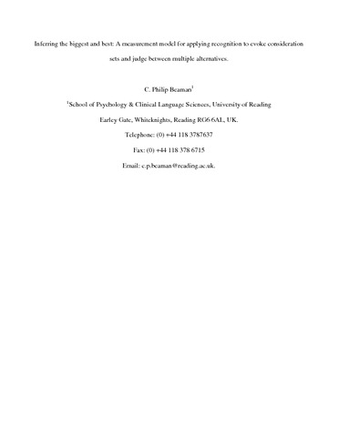 Inferring the biggest and best: a measurement model for applying recognition to evoke consideration sets and judge between multiple alternatives.