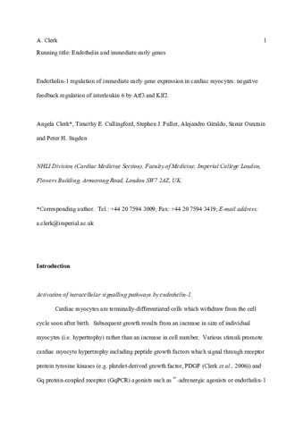Endothelin-1 regulation of immediate early gene expression in cardiac myocytes: negative feedback regulation of interleukin 6 by Atf3 and Klf2.