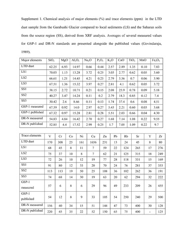 A significant desert dust deposition event occurred on Mt. Elbrus, Caucasus Mountains, Russia on 5 May 2009, where the deposited dust later appeared as a brown layer in the snow pack. An examination of dust transportation history and analysis of chemical and physical properties of the deposited dust were used to develop a new approach for high-resolution “provenancing” of dust deposition events recorded in snow pack using multiple independent techniques. A combination of SEVIRI red-green-blue composite imagery, MODIS atmospheric optical depth fields derived using the Deep Blue algorithm, air mass trajectories derived with HYSPLIT model and analysis of meteorological data enabled identification of dust source regions with high temporal (hours) and spatial (ca. 100 km) resolution. Dust, deposited on 5 May 2009, originated in the foothills of the Djebel Akhdar in eastern Libya where dust sources were activated by the intrusion of cold air from the Mediterranean Sea and Saharan low pressure system and transported to the Caucasus along the eastern Mediterranean coast, Syria and Turkey. Particles with an average diameter below 8 μm accounted for 90% of the measured particles in the sample with a mean of 3.58 μm, median 2.48 μm. The chemical signature of this long-travelled dust was significantly different from the locally-produced dust and close to that of soils collected in a palaeolake in the source region, in concentrations of hematite. Potential addition of dust from a secondary source in northern Mesopotamia introduced uncertainty in the “provenancing” of dust from this event. Nevertheless, the approach adopted here enables other dust horizons in the snowpack to be linked to specific dust transport events recorded in remote sensing and meteorological data archives.