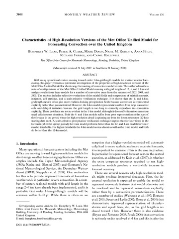 Characteristics of high-resolution versions of the Met Office unified model for forecasting convection over the United Kingdom.