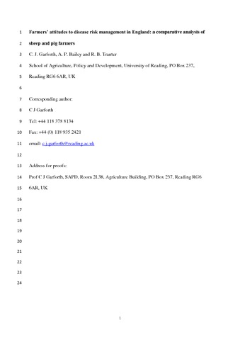 Hovi, M., McLeod, A., Gunn, G., 2005. Assessing UK farmer attitudes to biosecurity on sheep and cattle farms. Research in Veterinary Science 78, Suppl. A. 22 pages.