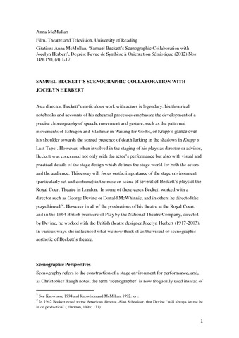 Samuel Beckett's scenographic collaboration with Jocelyn Herbert.