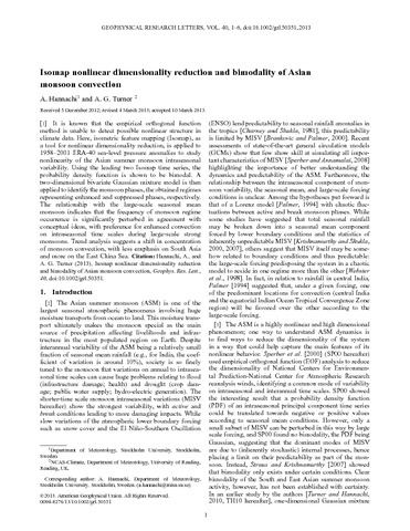 Hannachi, A. and Turner, A. G. orcid id iconORCID: https://orcid.org/0000-0002-0642-6876 (2013) Isomap nonlinear dimensionality reduction and bimodality of Asian monsoon convection. Geophysical Research Letters, 40 (8). pp. 1653-1658. ISSN 1944-8007 doi: 10.1002/grl.50351