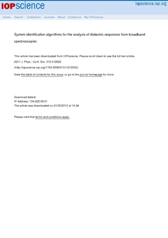 System identification algorithms for the analysis of dielectric responses from broadband spectroscopies.