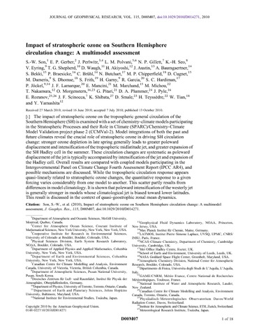 Son, S.- W., Gerber, E. P., Perlwitz, J., Polvani, L. M., Gillett, N. P., Seo, K.-H., Eyring, V., Shepherd, T. G. orcid id iconORCID: https://orcid.org/0000-0002-6631-9968, Waugh, D., Akiyoshi, H., Austin, J., Baumgaertner, A., Bekki, S., Braesicke, P., Brühl, C., Butchart, N., Chippenfield, M. P., Cugnet, D., Dameris, M., Dhomse, S., Frith, S., Garny, H., Garcia, R., Hardiman, S. C., Jöckel, P., Lamarque, J. F., Mancini, E., Marchand, M., Michou, M., Nakamura, T., Morgenstern, O., Pitari, G., Plummer, D. A., Pyle, J., Rozanov, E., Scinocca, J. F., Shibata, K., Smale, D., Teyssèdre, H., Tian, W. and Yamashita, Y. (2010) Impact of stratospheric ozone on Southern Hemisphere circulation change: A multimodel assessment. Journal of Geophysical Research - Atmospheres, 115 (D3). D00M07. ISSN 0148-0227 doi: 10.1029/2010JD014271