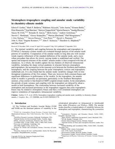 Gerber, E. P., Baldwin, M. P., Akiyoshi, H., Austin, J., Bekki, S., Braesicke, P., Butchart, N., Chipperfield, M., Dameris, M., Dhomse, S., Firth, S. M., Garcia, R. R., Garny, H., Gettelman, A., Hardiman, S. C., Karpechko, A., Marchand, M., Morgenstern, O., Nielsen, E., Pawson, S., Peter, T., Plummer, D. A., Pyle, J. A., Rozanov, E., Scinocca, J. F., Shepherd, T. G. ORCID: https://orcid.org/0000-0002-6631-9968 and Smale, D.