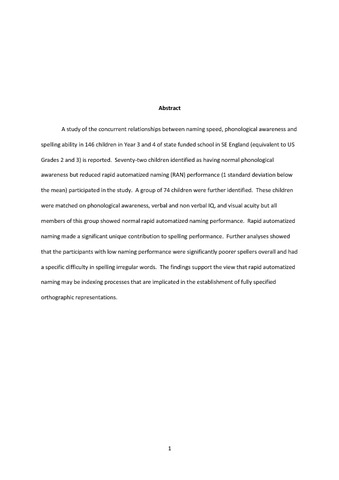 A study of the concurrent relationships between naming speed, phonological awareness and spelling ability in 146 children in Year 3 and 4 of state funded school in SE England (equivalent to US Grades 2 and 3) is reported. Seventy-two children identified as having normal phonological awareness but reduced rapid automatized naming (RAN) performance (1 standard deviation below the mean) participated in the study. A group of 74 children were further identified. These children were matched on phonological awareness, verbal and non verbal IQ, and visual acuity but all members of this group showed normal rapid automatized naming performance. Rapid automatized naming made a significant unique contribution to spelling performance. Further analyses showed that the participants with low naming performance were significantly poorer spellers overall and had a specific difficulty in spelling irregular words. The findings support the view that rapid automatized naming may be indexing processes that are implicated in the establishment of fully specified orthographic representations.