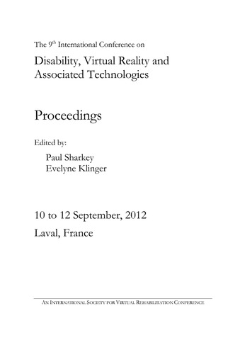 Sharkey, P. and Klinger, E., eds. (2012) Proceedings of the 9th international conference on disability, virtual reality and associated technologies (ICDVRAT 2012). ICDVRAT. The University of Reading, Reading, UK, pp534. ISBN 9780704915459