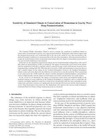 Sensitivity of simulated climate to conservation of momentum in gravity wave drag parameterization.