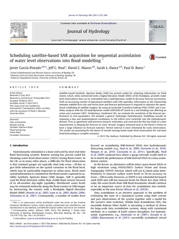 Garcia-Pintado, J., Neal, J., Mason, D. orcid id iconORCID: https://orcid.org/0000-0001-6092-6081, Dance, S. orcid id iconORCID: https://orcid.org/0000-0003-1690-3338 and Bates, P. (2013) Scheduling satellite-based SAR acquisition for sequential assimilation of water level observations into flood modelling. Journal of Hydrology, 495. pp. 252-266. ISSN 0022-1694 doi: 10.1016/j.jhydrol.2013.03.050