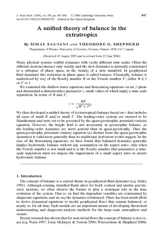 Saujani, S. and Shepherd, T. G. orcid id iconORCID: https://orcid.org/0000-0002-6631-9968 (2006) A unified theory of balance in the extratropics. Journal Of Fluid Mechanics, 569. pp. 447-464. ISSN 0022-1120 doi: 10.1017/S0022112006002783
