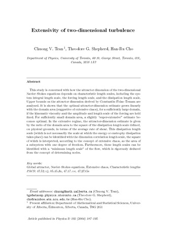 Tran, C. V., Shepherd, T. G. orcid id iconORCID: https://orcid.org/0000-0002-6631-9968 and Cho, H.-R. (2004) Extensivity of two-dimensional turbulence. Physica D: Nonlinear Phenomena, 192 (3-4). pp. 187-195. ISSN 0167-2789 doi: 10.1016/j.physd.2004.01.002