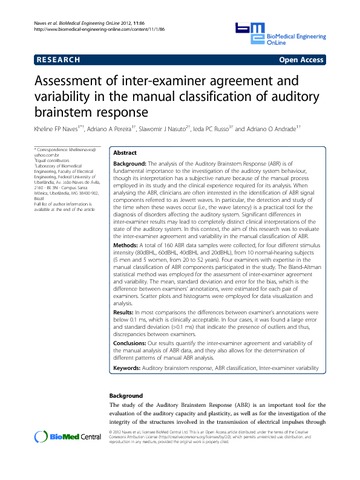 Additional Information The full text of this article is freely available via PMC using the link supplied in Related URLs Cite this article as: Naves et al.: Assessment of inter-examiner agreement and variability in the manual classification of auditory brainstem response. BioMedical Engineering OnLine 2012 11:86.