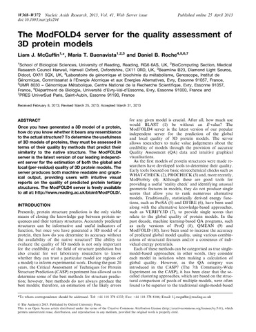 McGuffin, L. J. orcid id iconORCID: https://orcid.org/0000-0003-4501-4767, Buenavista, M. T. and Roche, D. B. (2013) The ModFOLD4 server for the quality assessment of 3D protein models. Nucleic Acids Research, 41 (W1). W368-W372. ISSN 1362-4962 doi: 10.1093/nar/gkt294