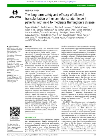The long-term safety and efficacy of bilateral transplantation of human fetal striatal tissue in patients with mild to moderate Huntington's disease.