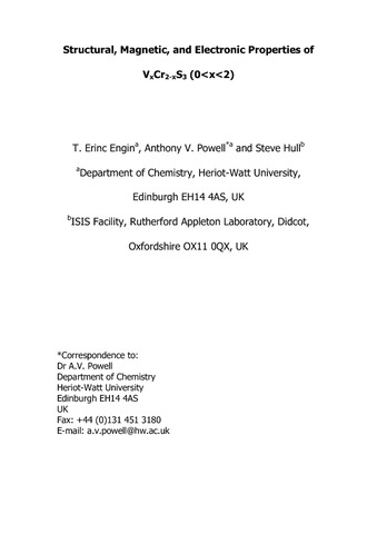 Engin, T. E., Powell, A. V. and Hull, S. (2008) Structural, magnetic, and electronic properties of VxCr2−xS3(0 <x< 2). Chemistry of Materials, 20 (5). pp. 2039-2048. ISSN 1520-5002 doi: 10.1021/cm702223s