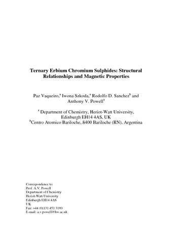 Ternary erbium chromium sulfides : structural relationships and magnetic properties.