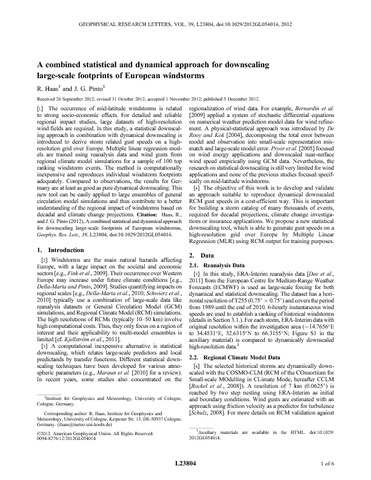 Haas, R. and Pinto, J. G. (2012) A combined statistical and dynamical approach for downscaling large-scale footprints of European windstorms. Geophysical Research Letters, 39 (23). L23804. ISSN 0094-8276 doi: 10.1029/2012GL054014