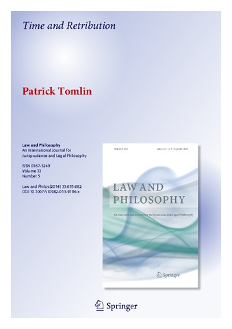 Tomlin, P. (2014) Time and retribution. Law and Philosophy, 33 (5). pp. 655-682. ISSN 0167-5249 doi: 10.1007/s10982-013-9196-z
