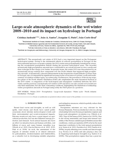 | Uncontrolled Keywords | Winter 2010 · Precipitation · Large-scale dynamics · Water cycle · North Atlantic Oscillation · Portugal |