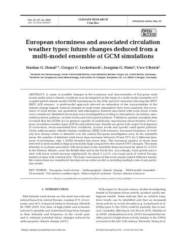 | Uncontrolled Keywords | European wind storms · Anthropogenic climate change · Multi-model ensemble · Uncertainty · Circulation weather types · Extra-tropical cyclones · Future climate scenarios |