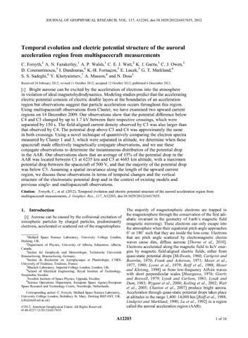 | Uncontrolled Keywords | auroral acceleration; electric potentials; multispacecraft |