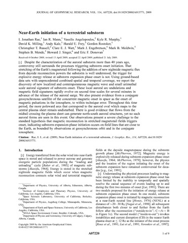 Rae, I. J., Mann, I. R., Angelopoulos, V., Murphy, K. R., Milling, D. K., Kale, A., Frey, H. U., Rostoker, G., Russell, C. T., Watt, C. E. J., Engebretson, M. J., Moldwin, M. B., Mende, S. B., Singer, H. J. and Donovan, E. F. (2009) Near-Earth initiation of a terrestrial substorm. Journal of Geophysical Research, 114. A07220. ISSN 0148-0227 doi: 10.1029/2008JA013771