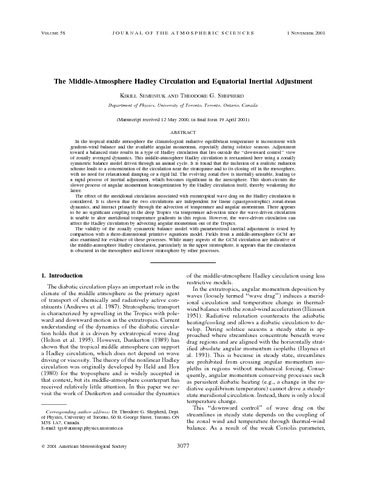 Semeniuk, K. and Shepherd, T. G. orcid id iconORCID: https://orcid.org/0000-0002-6631-9968 (2001) The middle-atmosphere Hadley circulation and equatorial inertial adjustment. Journal of the Atmospheric Sciences, 58 (21). pp. 3077-3096. ISSN 1520-0469 doi: 10.1175/1520-0469(2001)058<3077:TMAHCA>2.0.CO;2