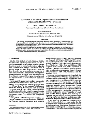 Cho, H.-R., Shepherd, T. G. orcid id iconORCID: https://orcid.org/0000-0002-6631-9968 and Vladimirov, V. A. (1993) Application of the direct Liapunov method to the problem of symmetric stability in the atmosphere. Journal of the Atmospheric Sciences, 50 (6). pp. 822-836. ISSN 1520-0469 doi: 10.1175/1520-0469(1993)050<0822:AOTDLM>2.0.CO;2
