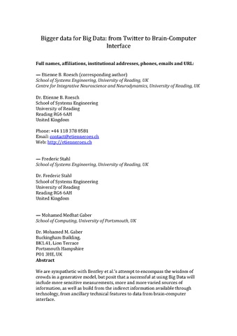 Bigger data for Big Data: from Twitter to brain-computer interface.