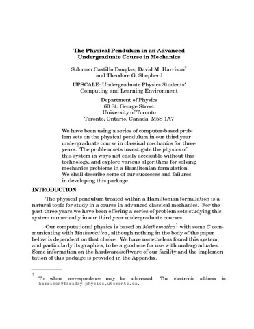 The physical pendulum treated with a Hamiltonian formulation is a natural topic for study in a course in advanced classical mechanics. For the past three years, we have been offering a series of problem sets studying this system numerically in our third-year undergraduate courses in mechanics. The problem sets investigate the physics of the pendulum in ways not easily accessible without computer technology and explore various algorithms for solving mechanics problems. Our computational physics is based on Mathematica with some C communicating with Mathematica, although nothing in this paper is dependent on that choice. We have nonetheless found this system, and particularly its graphics, to be a good one for use with undergraduates.