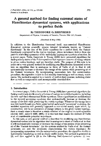Shepherd, T. G. orcid id iconORCID: https://orcid.org/0000-0002-6631-9968 (1990) A general method for finding extremal states of Hamiltonian dynamical systems, with applications to perfect fluids. Journal of Fluid Mechanics, 213 (1). pp. 573-587. ISSN 0022-1120 doi: 10.1017/S0022112090002452