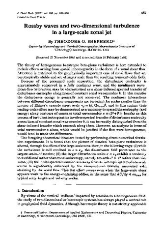 The theory of homogeneous barotropic beta-plane turbulence is here extended to include effects arising from spatial inhomogeneity in the form of a zonal shear flow. Attention is restricted to the geophysically important case of zonal flows that are barotropically stable and are of larger scale than the resulting transient eddy field. Because of the presumed scale separation, the disturbance enstrophy is approximately conserved in a fully nonlinear sense, and the (nonlinear) wave-mean-flow interaction may be characterized as a shear-induced spectral transfer of disturbance enstrophy along lines of constant zonal wavenumber k. In this transfer the disturbance energy is generally not conserved. The nonlinear interactions between different disturbance components are turbulent for scales smaller than the inverse of Rhines's cascade-arrest scale κβ[identical with] (β0/2urms)½ and in this regime their leading-order effect may be characterized as a tendency to spread the enstrophy (and energy) along contours of constant total wavenumber κ [identical with] (k2 + l2)½. Insofar as this process of turbulent isotropization involves spectral transfer of disturbance enstrophy across lines of constant zonal wavenumber k, it can be readily distinguished from the shear-induced transfer which proceeds along them. However, an analysis in terms of total wavenumber K alone, which would be justified if the flow were homogeneous, would tend to mask the differences. The foregoing theoretical ideas are tested by performing direct numerical simulation experiments. It is found that the picture of classical beta-plane turbulence is altered, through the effect of the large-scale zonal flow, in the following ways: (i) while the turbulence is still confined to K Kβ, the disturbance field penetrates to the largest scales of motion; (ii) the larger disturbance scales K < Kβ exhibit a tendency to meridional rather than zonal anisotropy, namely towards v2 > u2 rather than vice versa; (iii) the initial spectral transfer rate away from an isotropic intermediate-scale source is significantly enhanced by the shear-induced transfer associated with straining by the zonal flow. This last effect occurs even when the large-scale shear appears weak to the energy-containing eddies, in the sense that dU/dy [double less-than sign] κ for typical eddy length and velocity scales.