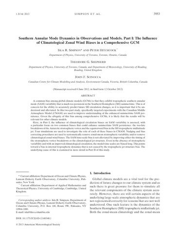 Southern annular mode dynamics in observations and models, Part I: The influence of climatological zonal wind biases in a comprehensive GCM.