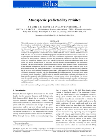 Uncontrolled Keywords | numerical weather prediction, predictability, predictive skill, ensemble prediction |