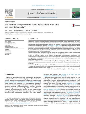 Clarke, K., Cooper, P. and Creswell, C. (2013) The parental overprotection scale: associations with child and parental anxiety. Journal of Affective Disorders, 151 (2). pp. 618-624. ISSN 0165-0327 doi: 10.1016/j.jad.2013.07.007