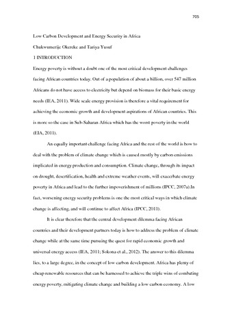 Okereke, C. and Yusuf, T. (2013) Low carbon development and energy security in Africa. In: Dyer, H. and Trombetta, M.J. (eds.) International handbook on energy security. Edward Elgar, Cheltenham. ISBN 9781781007891