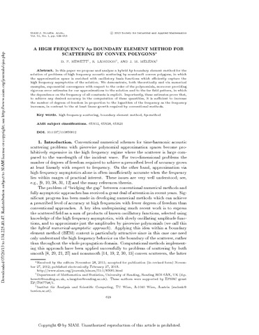 Hewett, D. P., Langdon, S. and Melenk, J. M. (2013) A high frequency $hp$ boundary element method for scattering by convex polygons. SIAM Journal on Numerical Analysis (SINUM), 51 (1). pp. 629-653. ISSN 0036-1429 doi: 10.1137/110856812