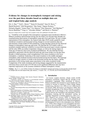 Ray, E. A., Moore, F. L., Rosenlof, K. H., Davis, S. M., Boenisch, H., Morgenstern, O., Smale, D., Rozanov, E., Hegglin, M.