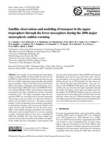 Manney, G. L., Harwood, R. S., MacKenzie, I. A., Minschwaner, K., Allen, D. R., Santee, M. L., Walker, K. A., Hegglin, M. I. orcid id iconORCID: https://orcid.org/0000-0003-2820-9044, Lambert, A., Pumphrey, H. C., Bernath, P. F., Boone, C. D., Schwartz, M. J., Livesey, N. J., Daffer, W. H. and Fuller, R. A. (2009) Satellite observations and modeling of transport in the upper troposphere through the lower mesosphere during the 2006 major stratospheric sudden warming. Atmospheric Chemistry and Physics, 9. ISSN 1680-7316 doi: 10.5194/acp-9-4775-2009