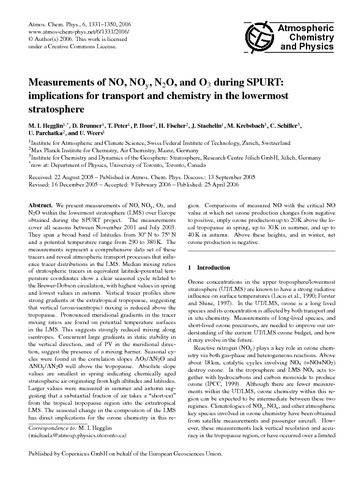Hegglin, M. I. orcid id iconORCID: https://orcid.org/0000-0003-2820-9044, Brunner, D., Peter, T., Hoor, P., Fischer, H., Staehelin, J., Krebsbach, M., Schiller, C., Parchatka, U. and Weers, U. (2006) Measurements of NO, NOy, N2O, and O3 during SPURT: implications for transport and chemistry in the lowermost stratosphere. Atmospheric Chemistry and Physics, 6. pp. 1331-1350. ISSN 1680-7324 doi: 10.5194/acp-6-1331-2006